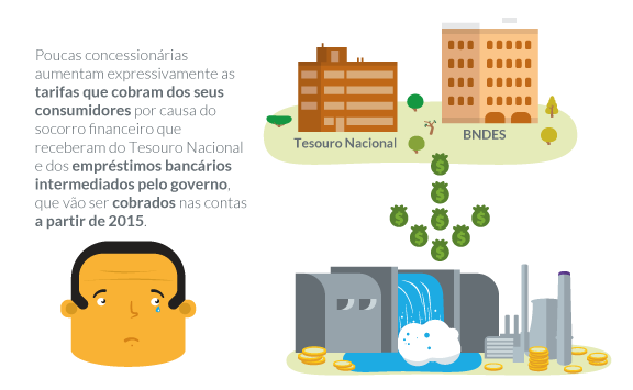 Além de repasses do Tesouro Nacional (pagos pelos impostos dos contribuintes) para as concessionárias de distribuição de eletricidade também foram realizados empréstimos bancários intermediados pelo governo, que vão ser cobrados nas contas a partir de 2015. Depois de um primeiro empréstimo de R$ 11 bilhões, as distribuidoras tomaram outros R$ 7 bilhões emprestados. Tais empréstimos deverão ser devolvidos a partir de novembro de 2015, pela taxa de empréstimos interbancários.