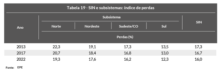 A comparação dos dados de produção e consumo de eletricidade realizada pelo ONS e pela EPE/MME mostram que, em média, 16% da energia elétrica produzida no SIN é perdida no caminho. Há estimativas do Tribunal de Contas da União superiores a esta.