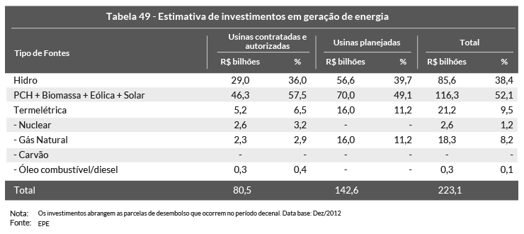 Apenas em novos investimentos em geração, visando atender aumento de consumo (portanto incluindo perdas e desperdícios) planeja-se gastar, nos próximos 10 anos, R$ 223,10 bilhões, quase exclusivamente com recursos públicos.
